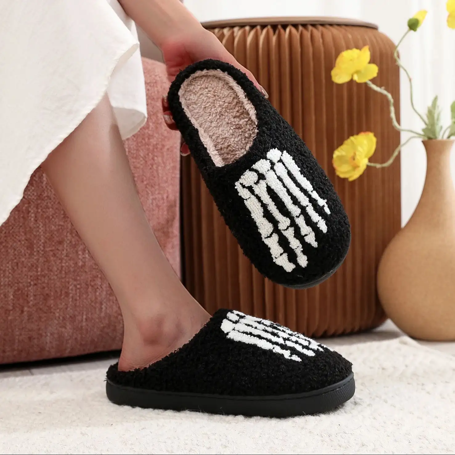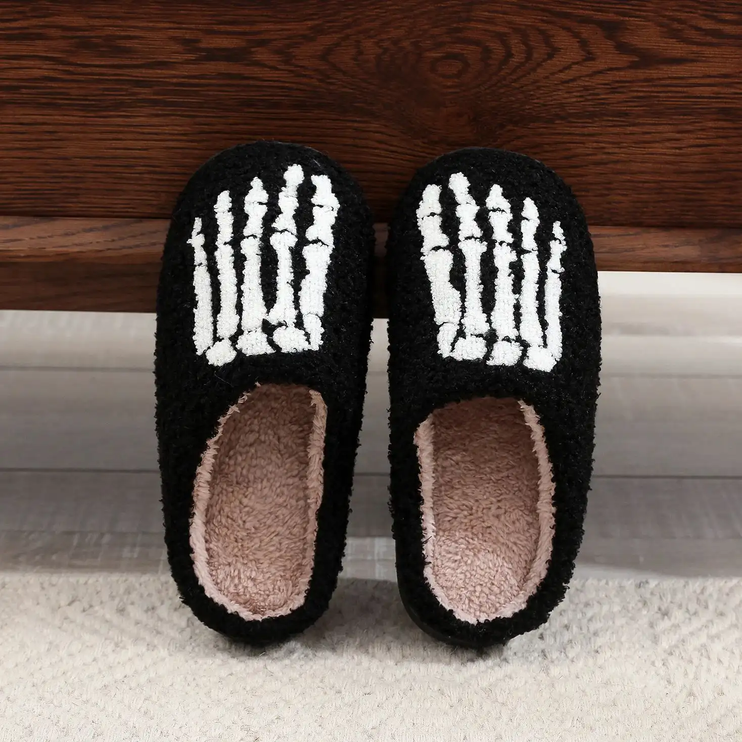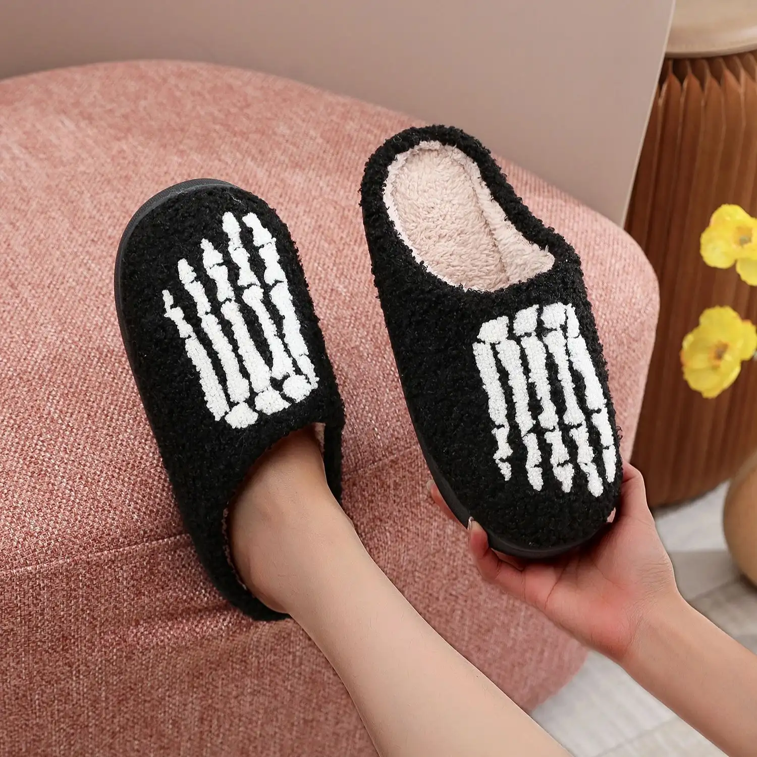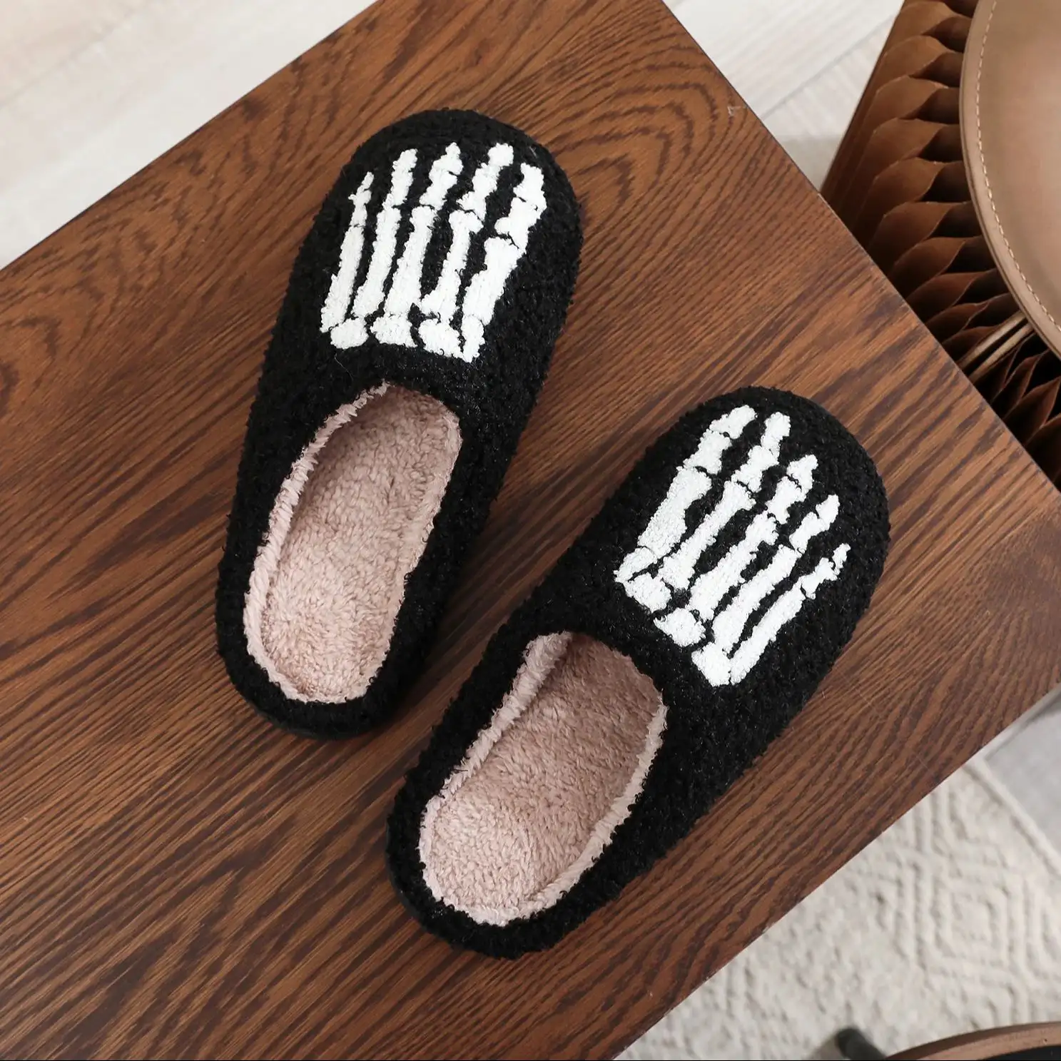 Dark Style Home Platform Cozy Fur Cotton Slippers Warm Non-slip Indoor Slipper Women Halloween Gift