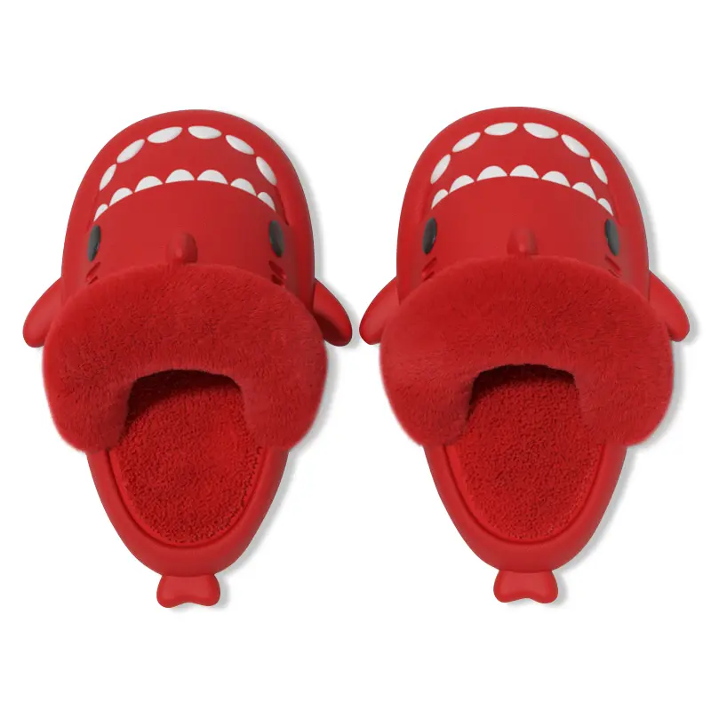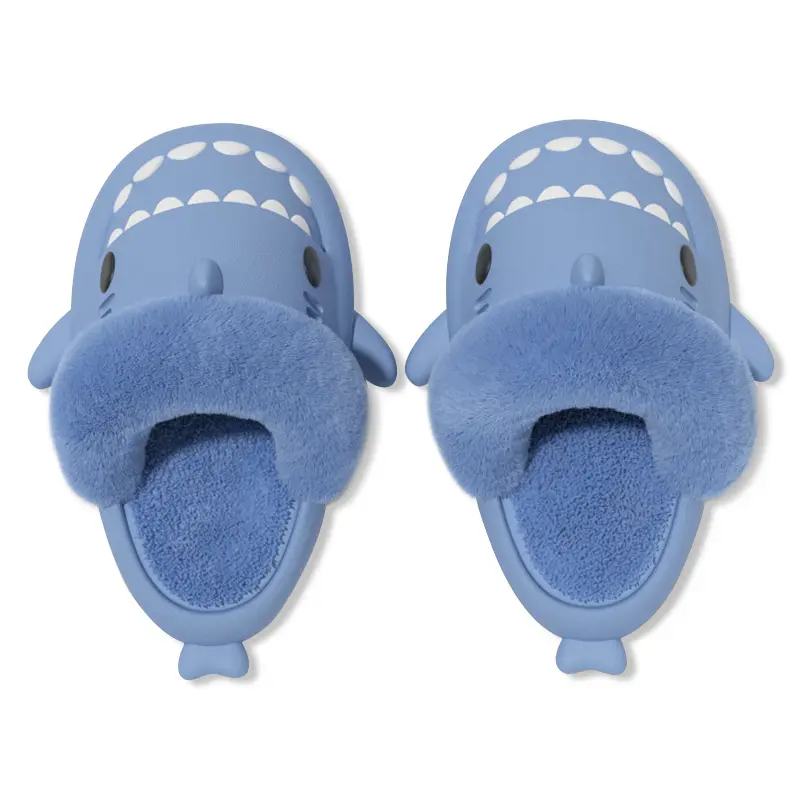 Shark Slippers For Women Winter Warm Furry Cotton Shoes Non-Slip Waterproof Home Slides
