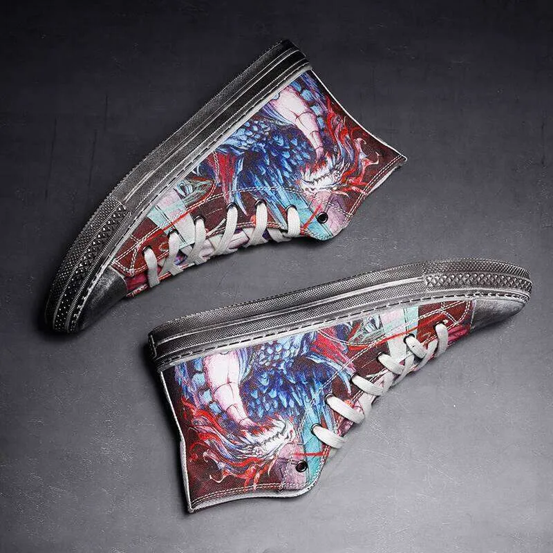 Men Shoes Fashionable And High-End Abstract Graffiti Personality Men's Sports Shoes Hip-Hop Street Dance Ethnic Style Canvas Shoes