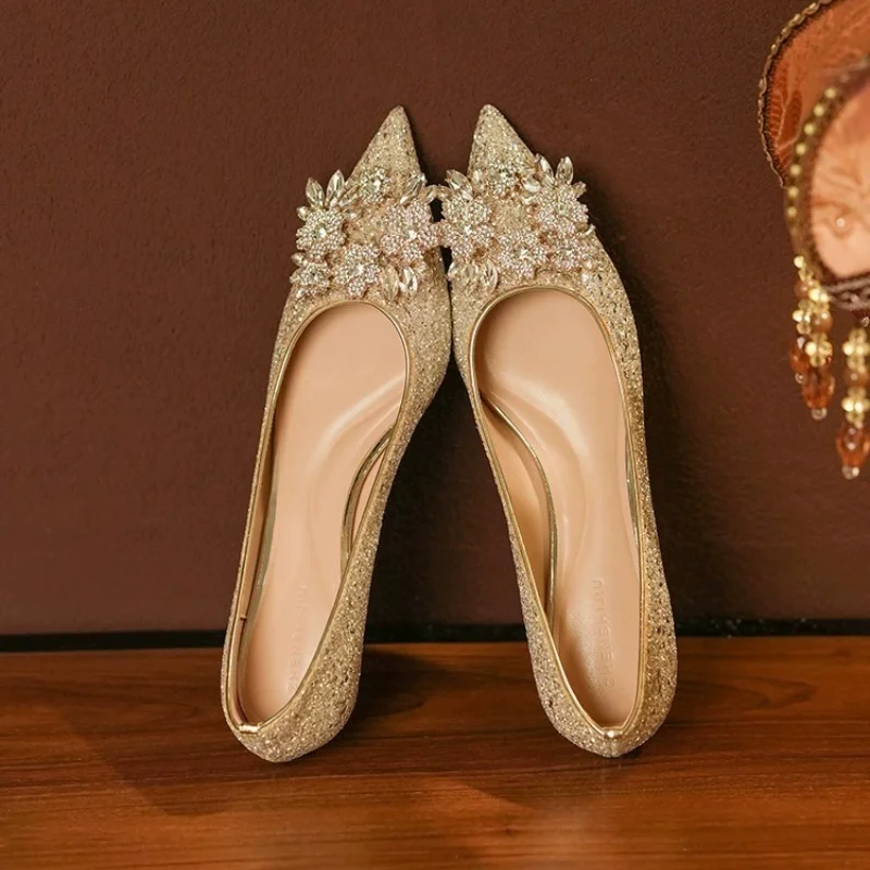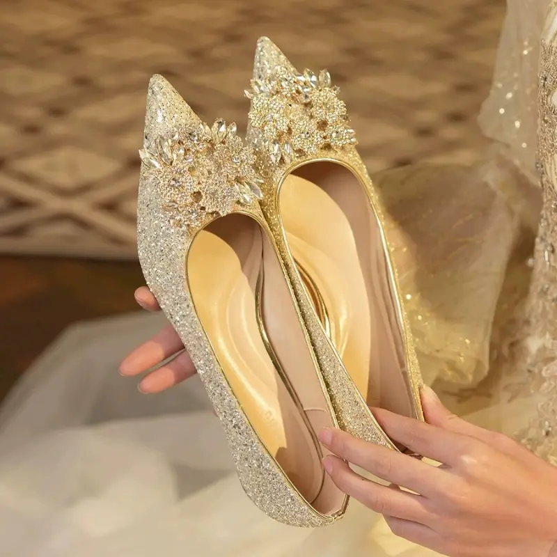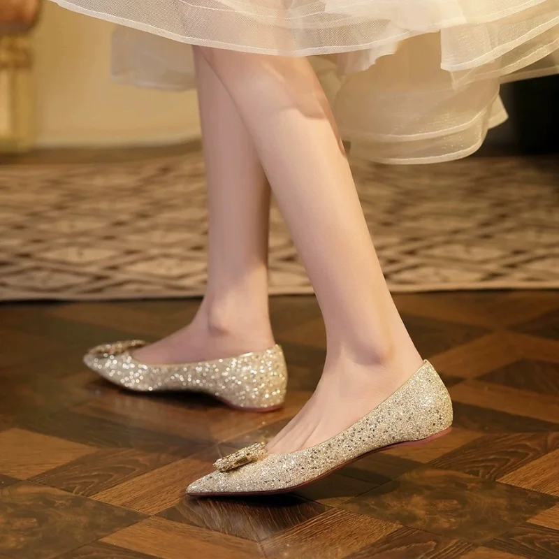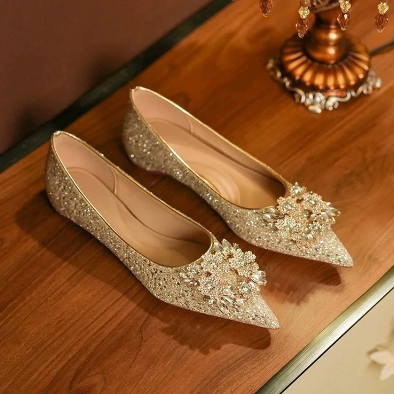 Women's Flat Shoes, Pointed Toe, Low Heel, Rhinestone Wedding Shoes, Bridal Shoes