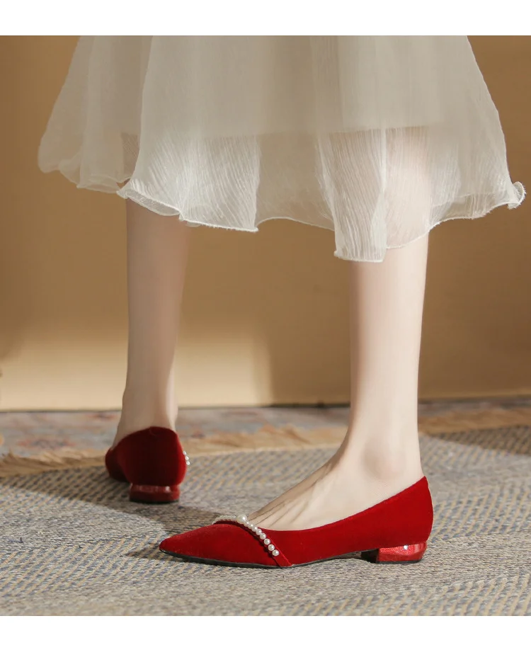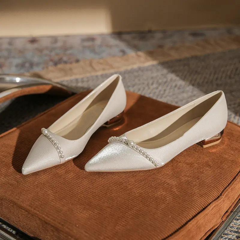 Trendy And Best-Selling Pointed-Toe Flat Bridal Shoes, Comfortable Low Heel