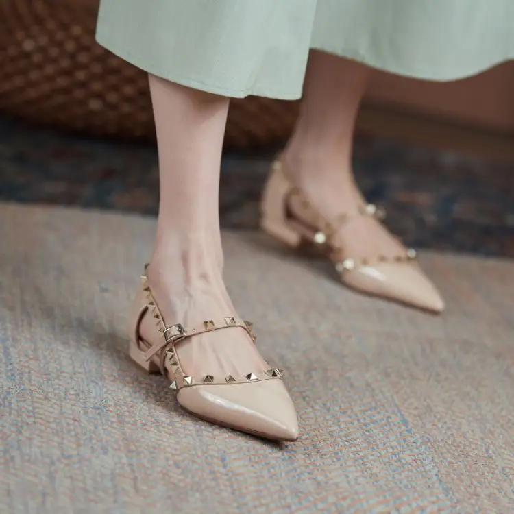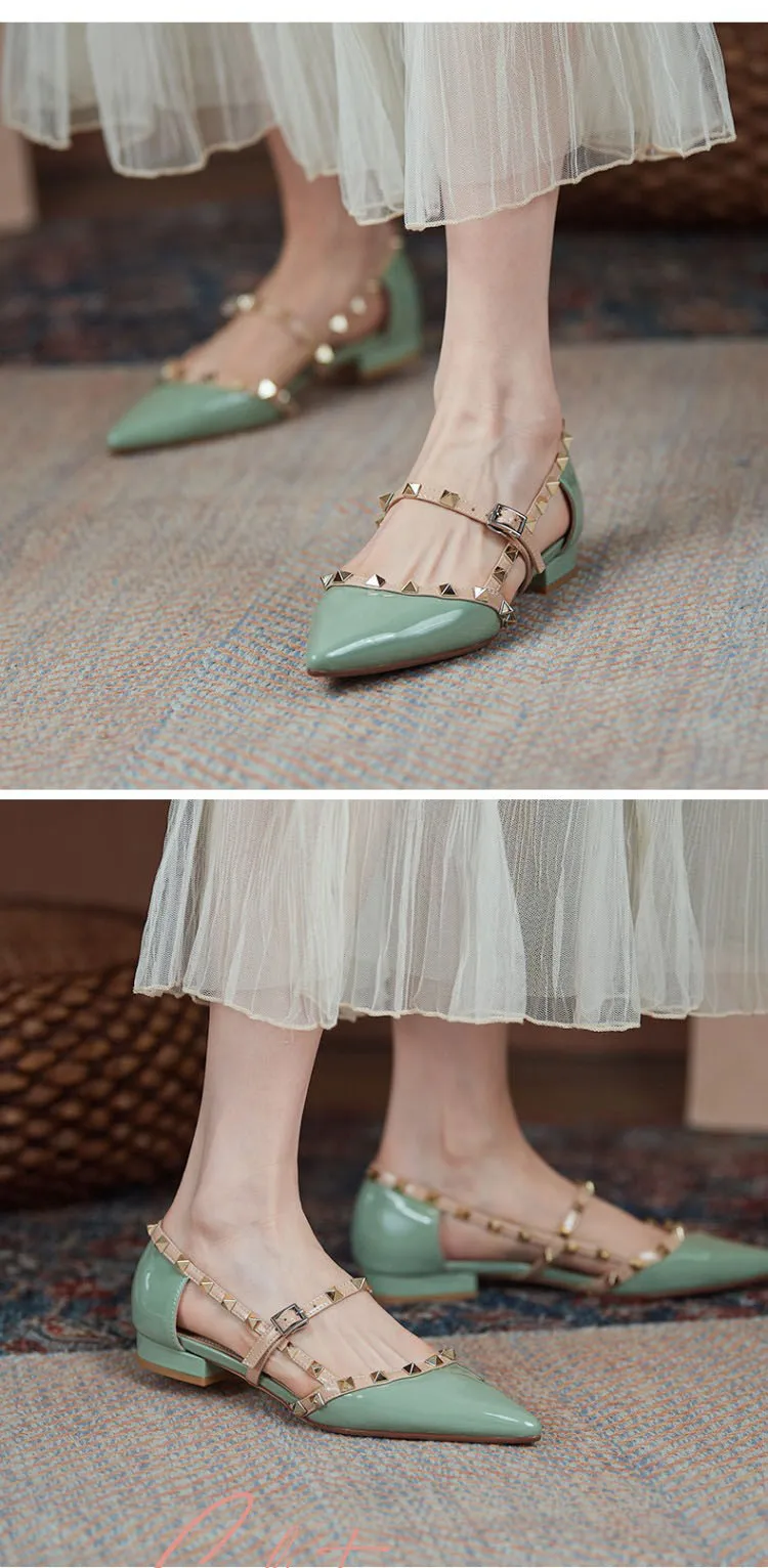 Women's Pointed-Toe Flat Sandals With Studs Slip-On Flat Shoes