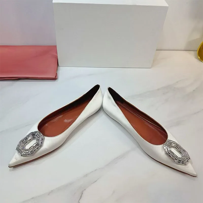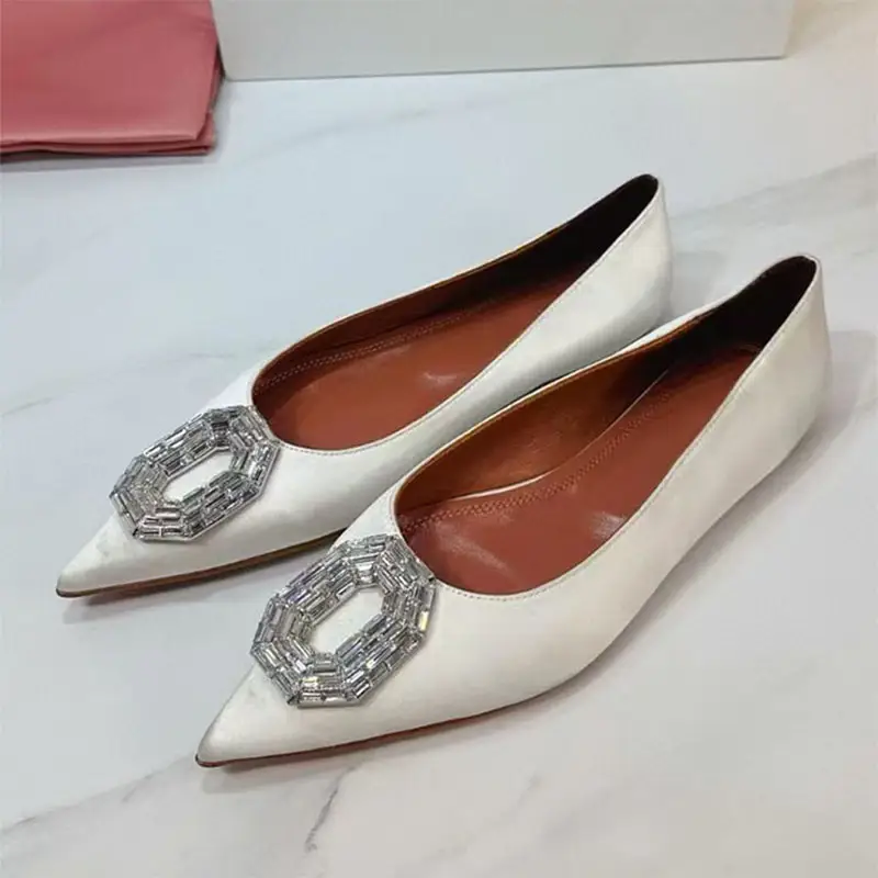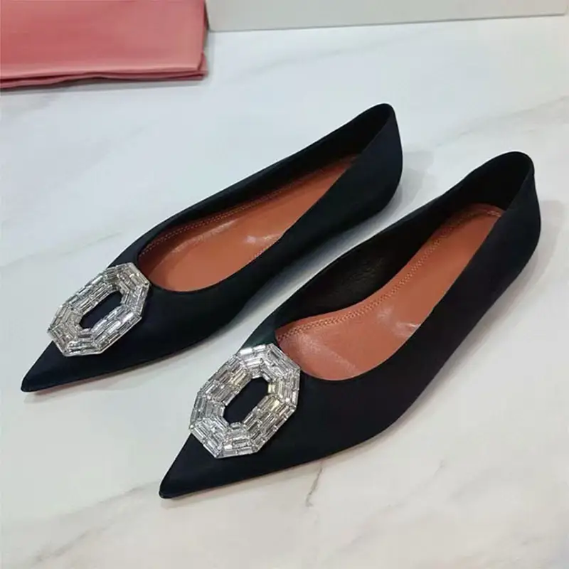 Classic Pointed Toe Flat Shoes For Women Rhinestone Satin Modern Shoes Woman Comfort Leisure Shoes Woman Mujer